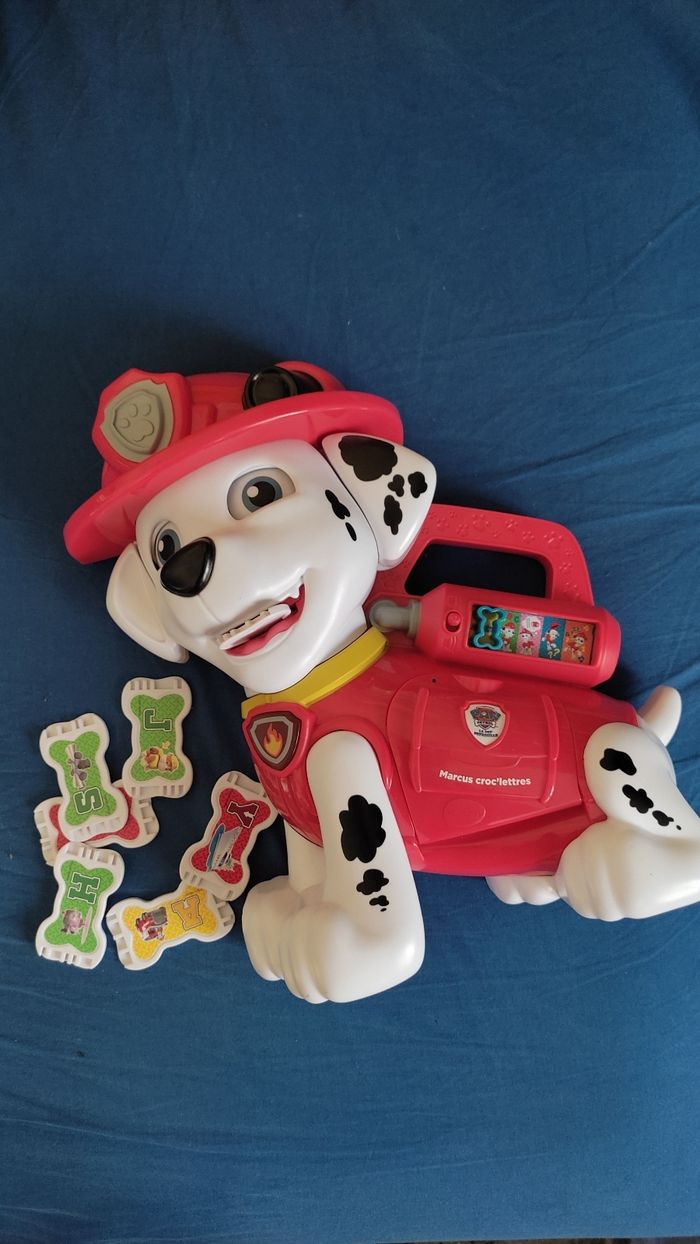 Apprends les lettres et fais plein de découvertes avec Marcus croc’lettres ! Donne un os-friandise à Marcus et il te dira la lettre, le son de cette lettre, un mot commençant par cette lettre et bien davantage !