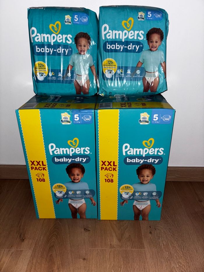 Lot De  294 Couches Pampers Baby-Dry Neuf Dans L’emballage Taille: 5 ( Format XXL). - photo numéro 1