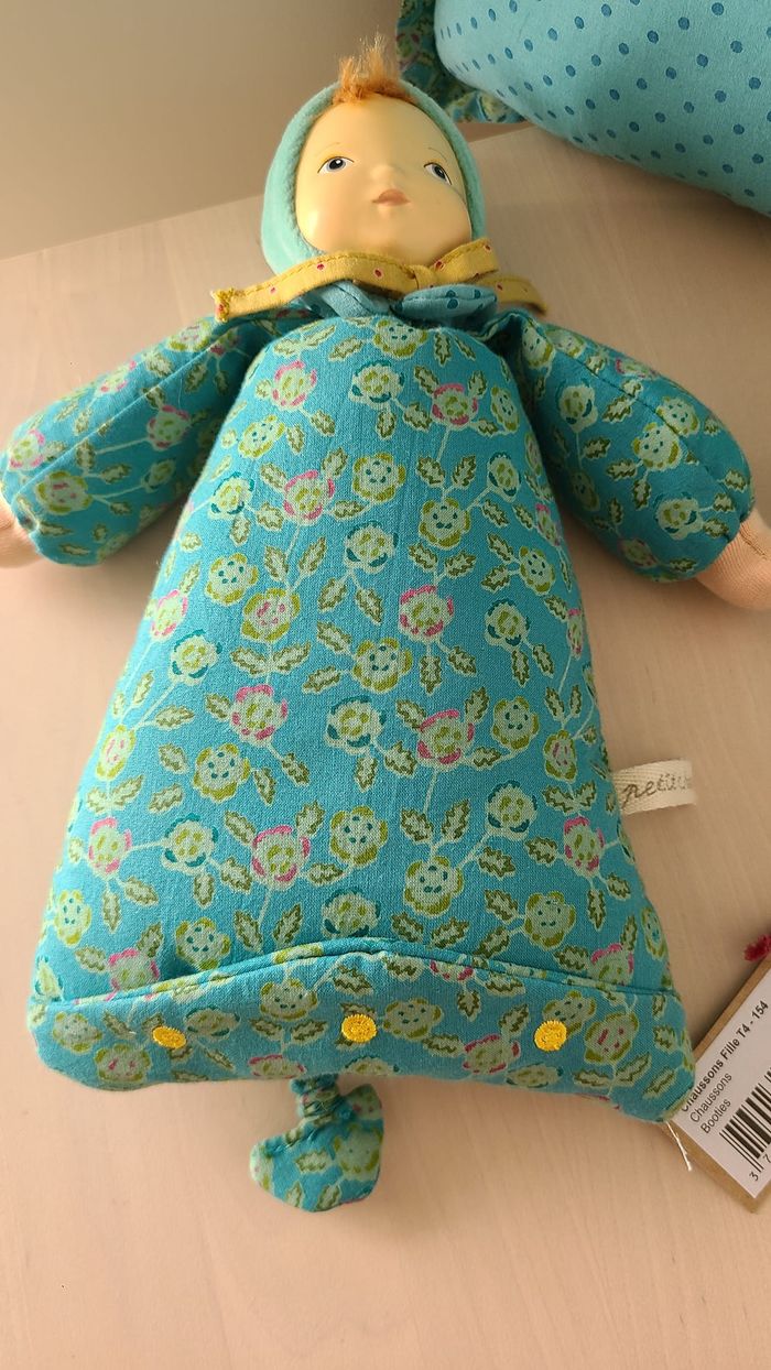 Poupée musicale Leelani avec une tête en caoutchouc naturel, peinte à la main (9 passages) "petit chose" (28 cm) coussin de la même collection petite chose chaussons t'4 154 moulin roty