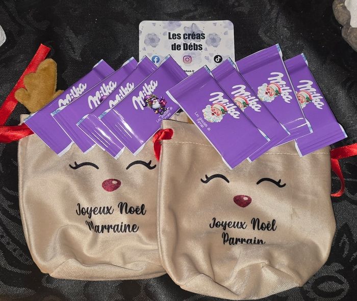 Nous vous proposons de jolis pochons de Noël personnalisables pour les fêtes de fin d'année, avec ou sans chocolats Ces pochons peuvent être remplis de vos propres chocolats ou d'un cadeau, et constitueront un charmant souvenir de Noël. Offrez un cadeau utile et peu coûteux à vos proches! Nous pouvons également faire pour entreprise ou autre a prix dégressif. Paiement CB, PayPal ou espèces. (76) #Noël #Fêtes #Cadeaux #Chocolats #personnalisation #petiteentreprise #personnalisable #creationspersonnalisées #artisanal #smallbusiness #creatricefrancaise #creationpersonnalisable #marchedenoël #offrircadeau #pochon #pochette #petitrenne #rennerudolph #rennerudolph #rudolph