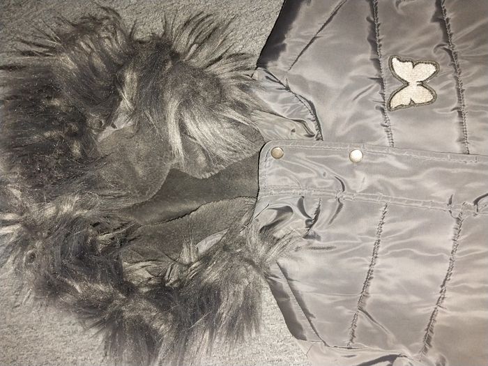 Manteau étanche marque Inextenso, taille 12 ans, chaud gris foncé, avec moumoute amovible sur la capouche. Impermeable. Doublure en moumoute. 2 poches frontaux. Fermeture eclair et pressions en parfait état de fonctionnement. Detailles en pailletes dorées. Veste marque Kiabi, grise clair, doublure moumoute blanche, taille 12 ans. 2 poches frontaux. Fermeture eclair en parfait état de fonctionnement.
