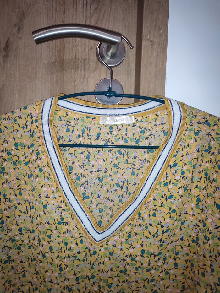 Vends jolie blouse Season en taille S, au motif fleuri dans les tons jaunes, verts et roses. Coupe légère et confortable, parfaite pour le printemps/été.