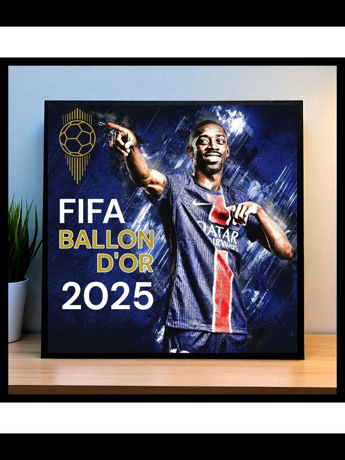 ⭐ Magnifique cadre hommage à Ousmane Dembélé, Ballon d'Or 2025, idéal pour les fans du PSG ou les collectionneurs de football.