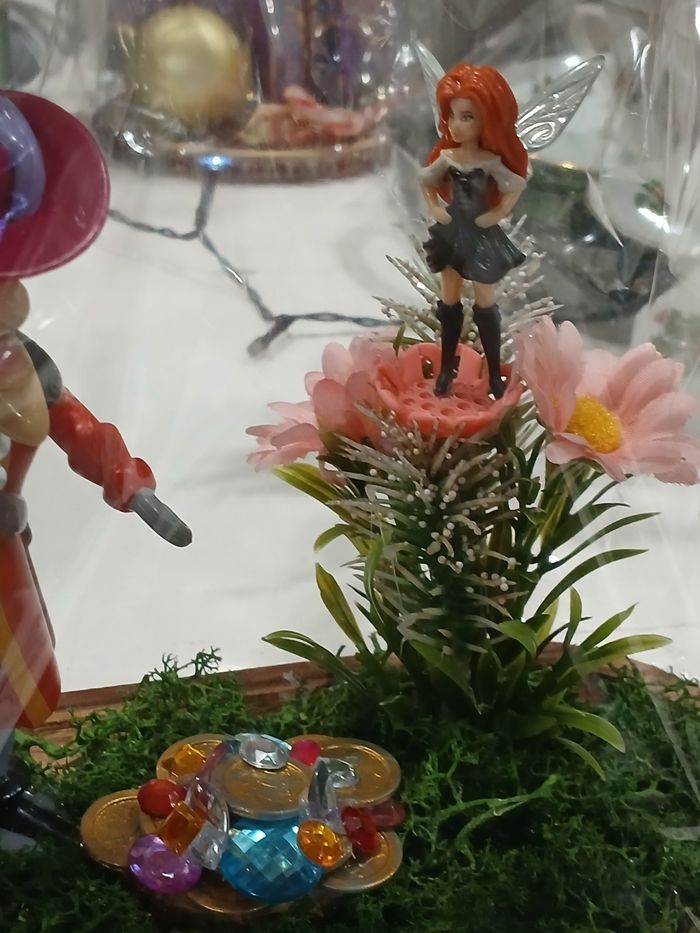 Scène représentant la Fée Pirate et le Capitaine Crochet qui quand on le remonte, il agité son bras Parfait comme petit cadeau en attendant Noël