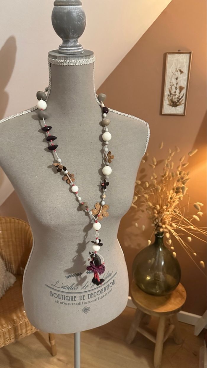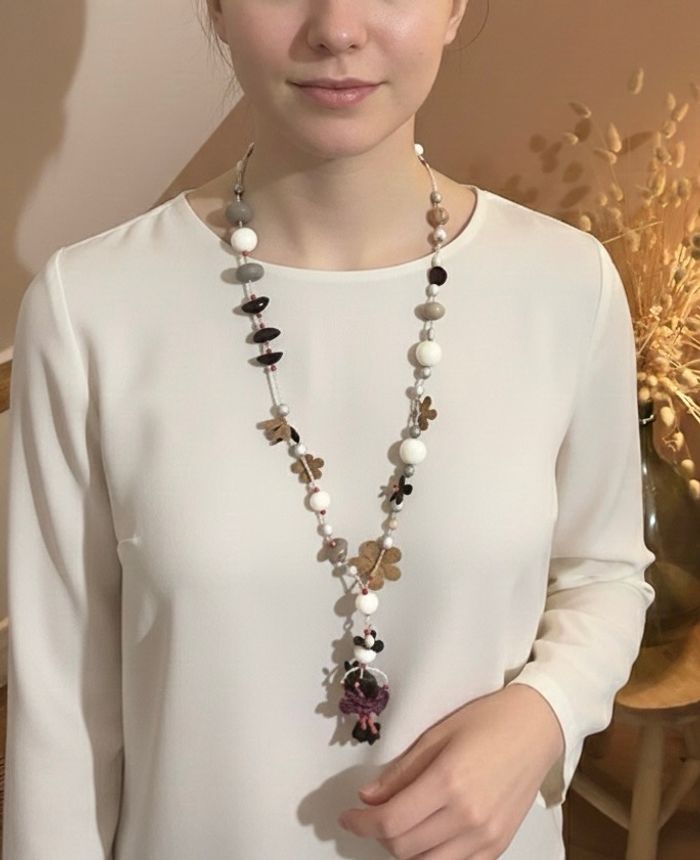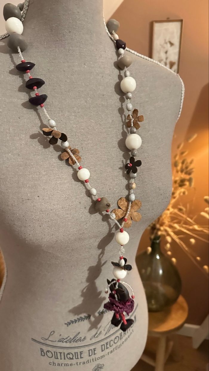 Magnifique collier fantaisie composé de petites perles et de motifs fleurs, parfait pour apporter une touche douce, élégante et féminine à ta tenue.