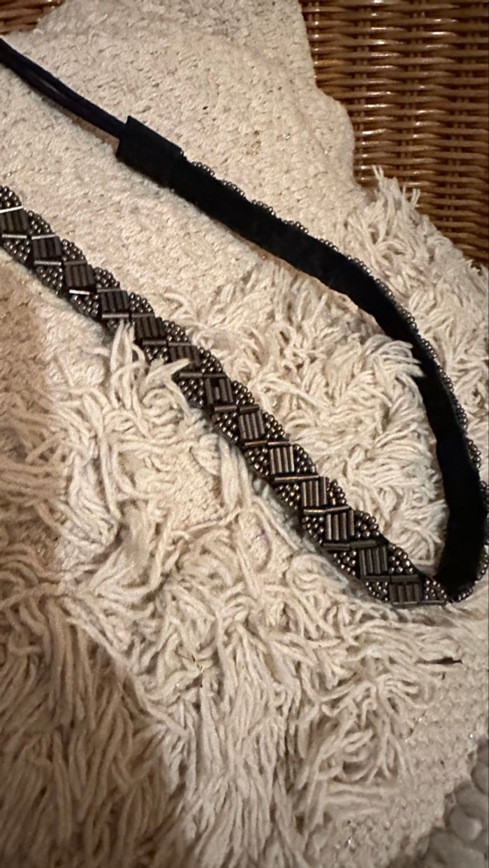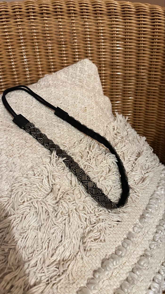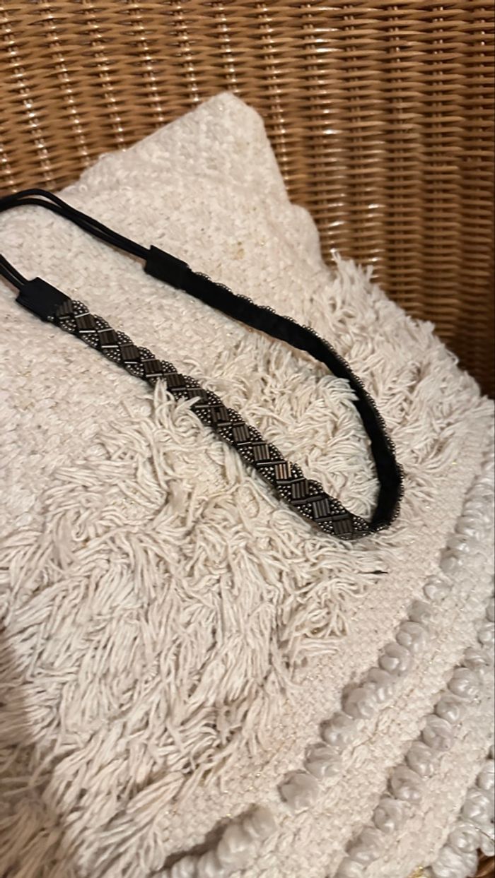 Magnifique headband noir et gris avec un joli effet perles plates géométriques.