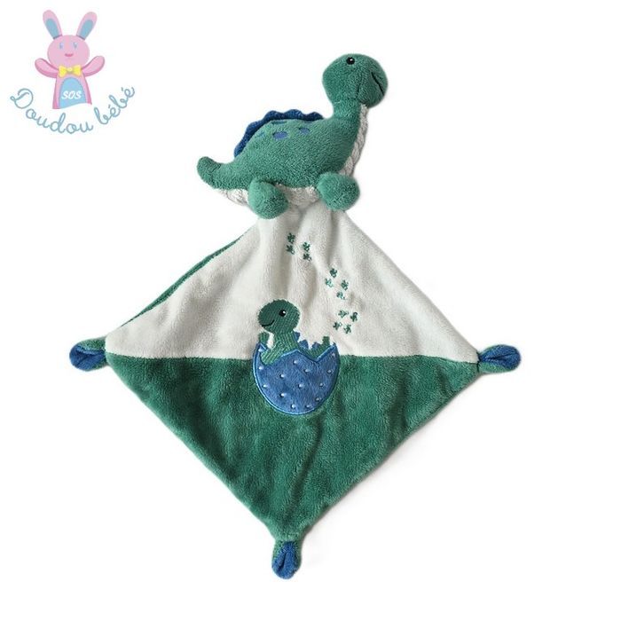 Doudou plat Dinosaure vert bleu blanc bébé TEX BABY