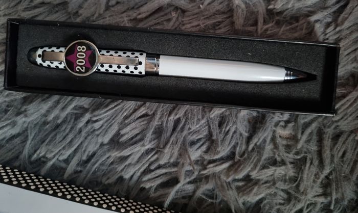 Stylo cette année là (2008),ancre couleur noir ,stylo blanc à pois noir, idéale cadeau Noël,anniversaire ou autres .