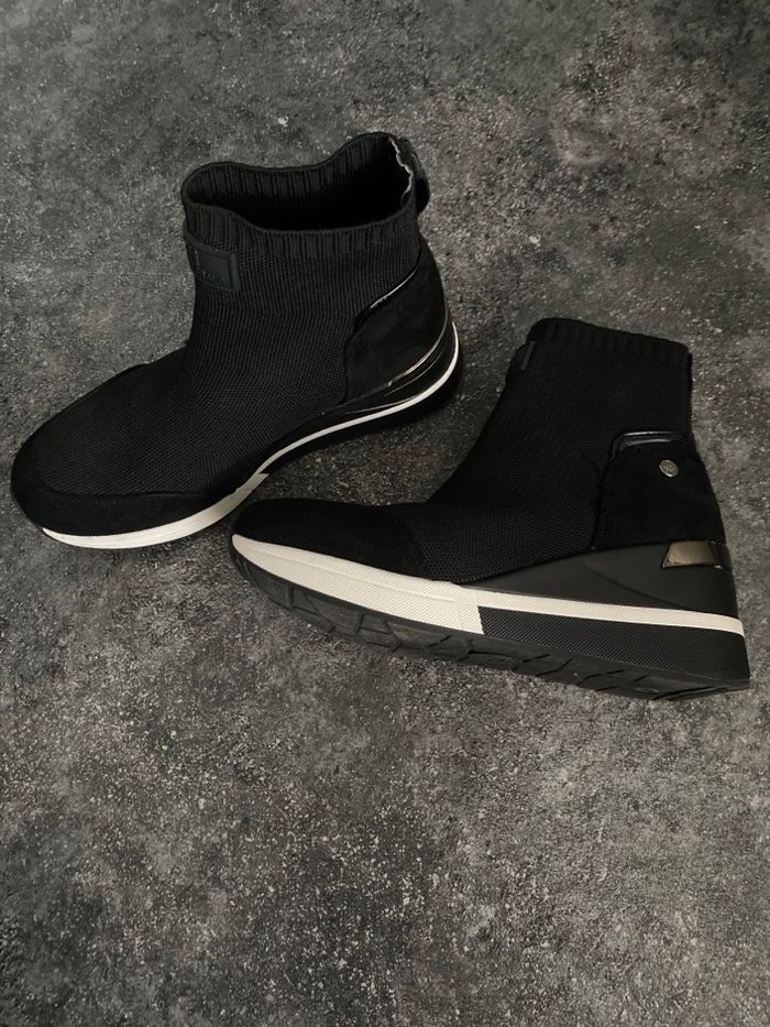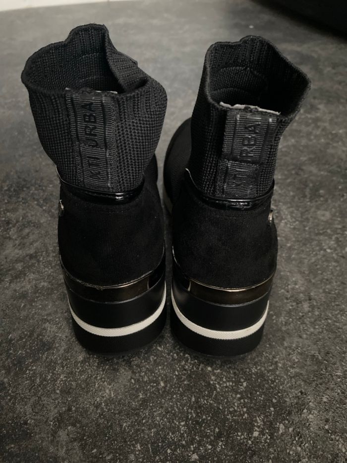 Bottines de sport pour femme avec talon compensé de 7 cm de la marque Xti. Bottines élastiques avec semelle en caoutchouc antidérapant. Hauteur de la tige : 10 cm. Une bottine tendance et élégante pour cette saison. Ce modèle a obtenu le certificat végan par l'organisation mondiale PET