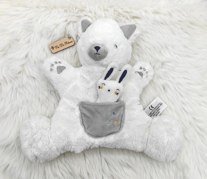 Marionnette ours blanc et gris Poche sur l'avant avec un bébé lapin, étoiles. Très doux Couleur : blanc, gris, jaune, bleu, noir Marque : Simba toys, Nicotoy, Kiabi État : Neuf sans étiquette Vous achetez le doudou que vous voyez. Entièrement vérifié. 🔍Une recherche particulière ? Tout n'est pas en ligne, n'hésitez pas à me contacter 😊 🛒Plusieurs articles vous intéressent ? Optez pour un lot, réduction appliquée 😉 #VDR_N5 #VDR_OURS #VDR_SIMBA Mots-clés : Sos Doudou, comforter, knuffel, knuffeldoekje, idée cadeau de Noël, cadeau de naissance, cadeau d'anniversaire, doudou en double, ninnin