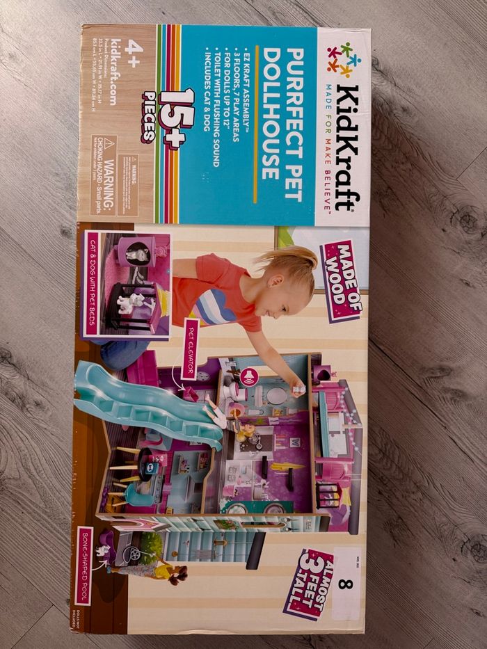 KidKraft Maison de Poupée en Bois Purrfect Pet incluant Accessoires et Mobilier avec Lumières et Sons pour Poupées 30 cm, Thème Animaux de Compagnie: un Chat et un Chien, Jouet Enfant dès 3 Ans, 20240
