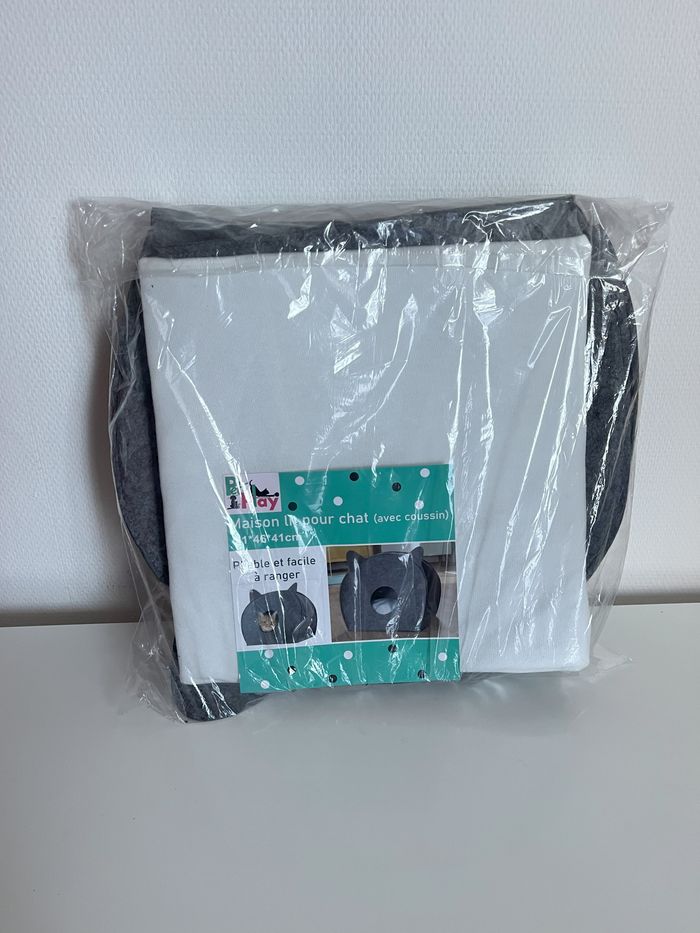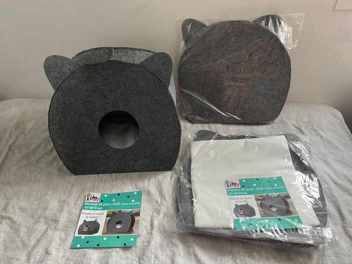 Panier, maison pour chat gris avec coussin a l intérieur Neuf - photo numéro 3
