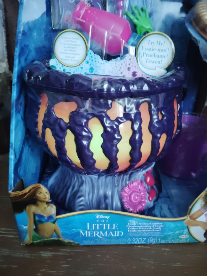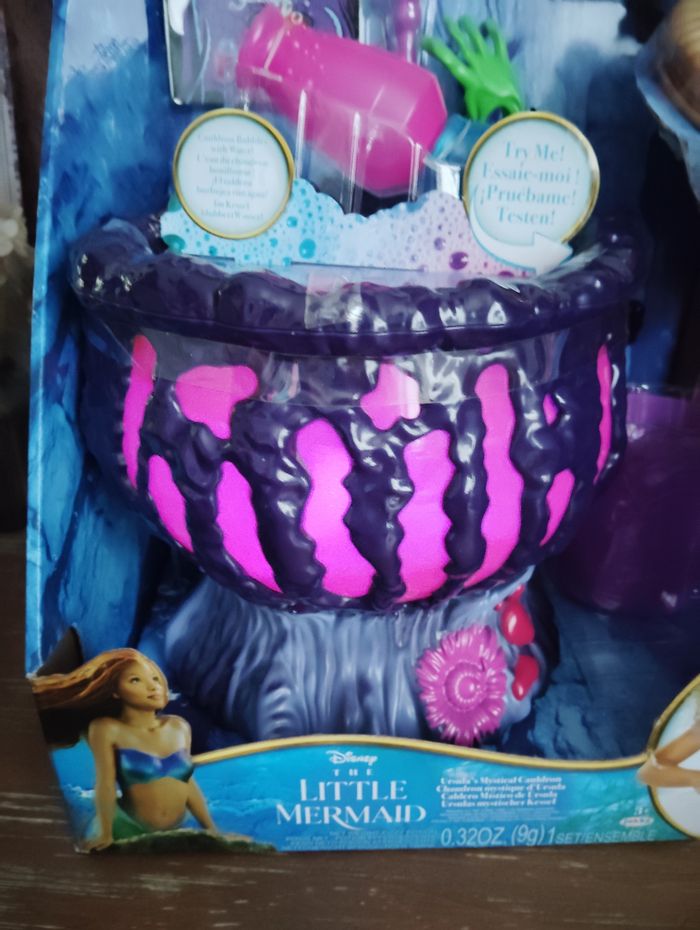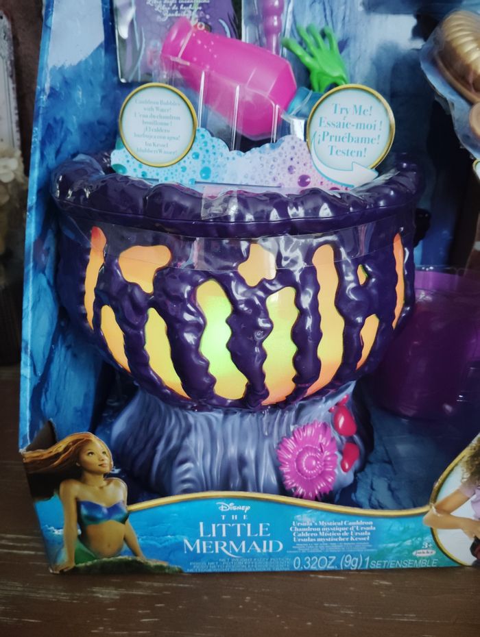 Chaudron électronique Ursula la petite sirène, lumineux et musical. Le carton est un peu abîmé voir la 2e et 3e photo. Boîte neuve scellée.