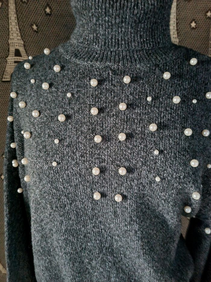 Pull court à col roulée avec perles taille S-M - photo numéro 1