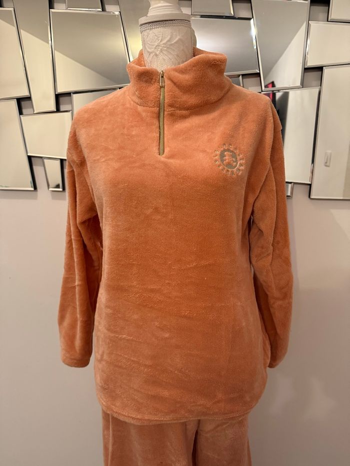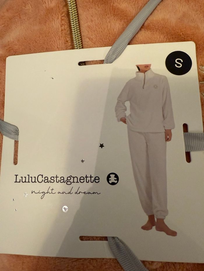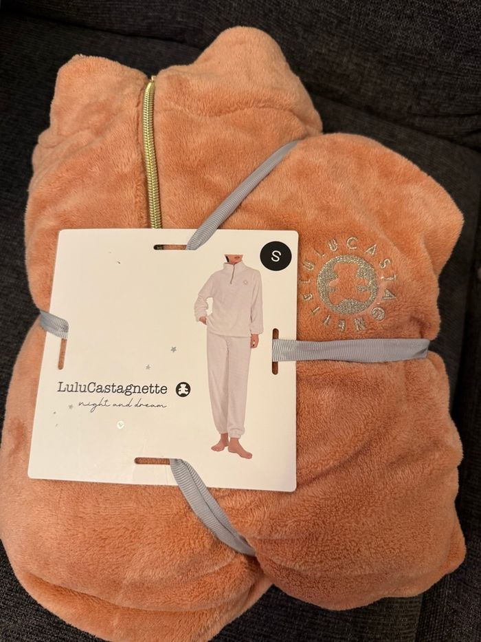Pyjama 2 pièces Lulu Castagnette, neuf avec étiquette, idéale pour l’hiver. Pyjama doux, confortable et élégant, idéal pour des nuits cocooning ou pour offrir. 🏷️Marque : Lulu Castagnette 📐Taille : S 🎨Couleur : Abricot 🧵Matière : 100 % polyester 👕 Haut : Logo Lulu Castagnette brodé sur la poitrine, avec col zippé ✨ État : Neuf avec étiquette