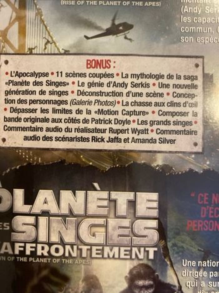 James Franco et 2 de plus La Planète des Singes : Les origines + La Planète des Singes : L'Affrontement 2 dvd Blu-ray disc