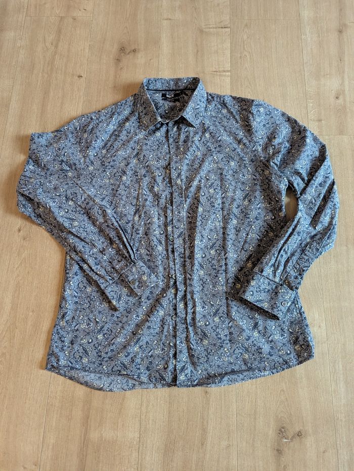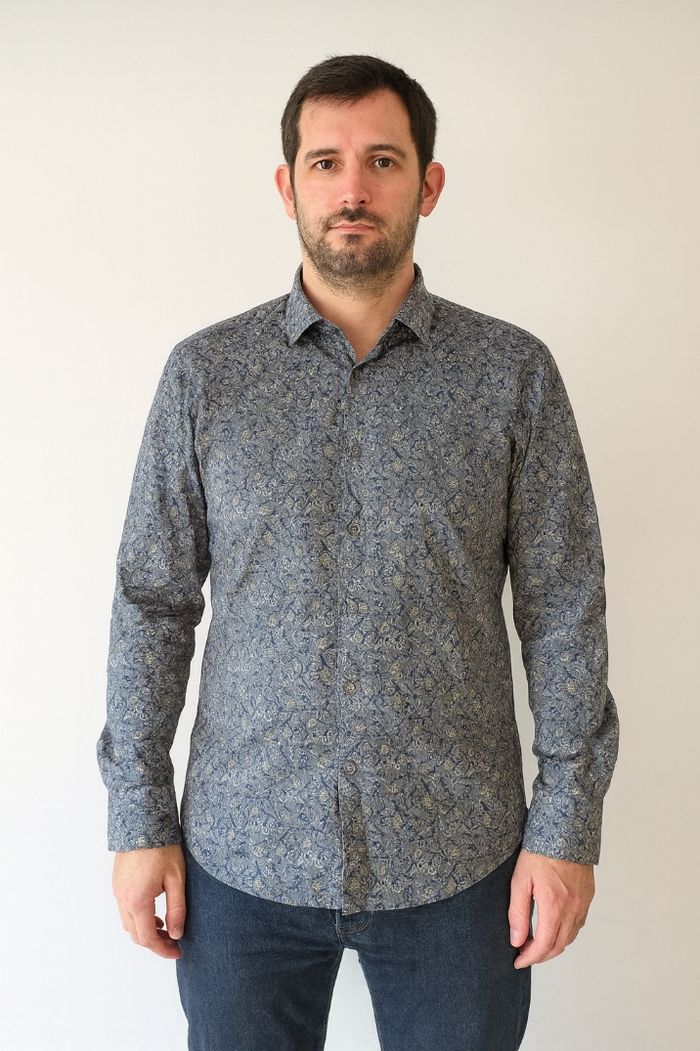 Motif élégant bleu/gris, facile à associer avec un jean ou un pantalon habillé.