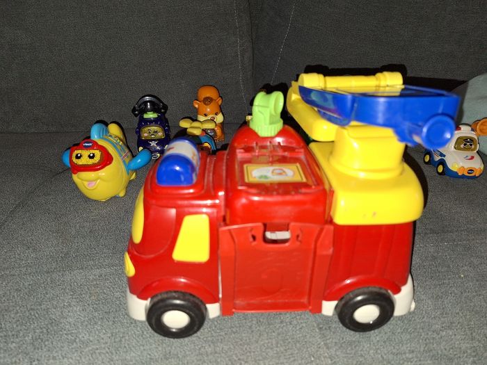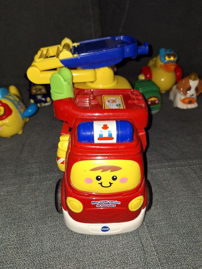 Vend lot de 10 tut tut animo (dont 2 qui vont dans l'eau) et tut tut bolide en bonne état sur 3 tut tut il manque de la peinture (photos dans l'annonce) je vous offre le camion pour l'achat du lot. Marque vtech Ils fonctionnent tous. Le poids total du colis est de 2.5kg