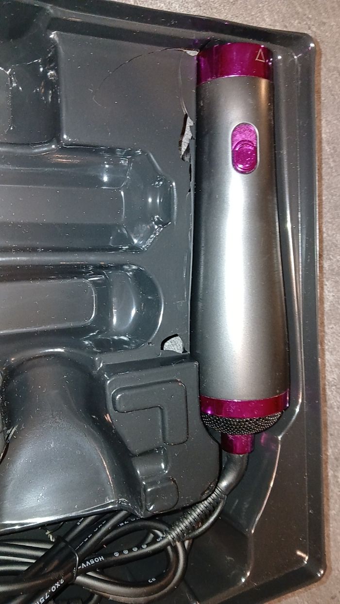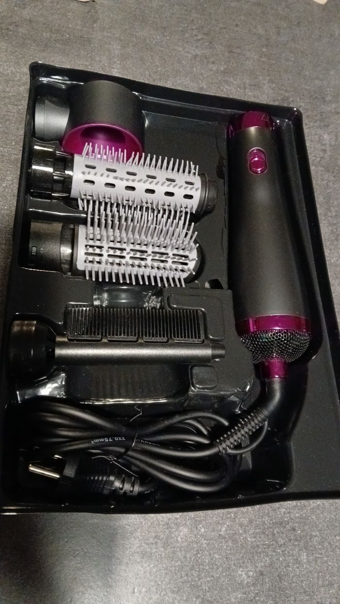 Brosse soufflante en tres bon etat, 5 en 1. De marque EKASN. Sèche cheveux multifonctionel domestique brosse a friser et a lisser. Couleur noire et violette. Servi que deux fois mais ne me convient pas.