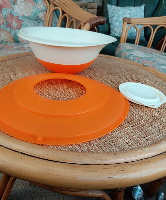 Tupperware Bol batteur Pro Cul de poule 3 L on orange et blanc