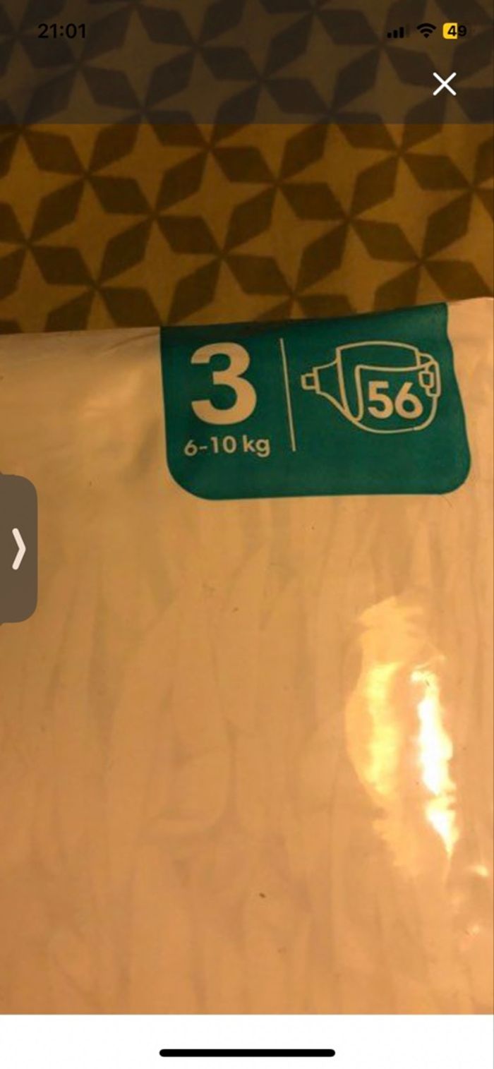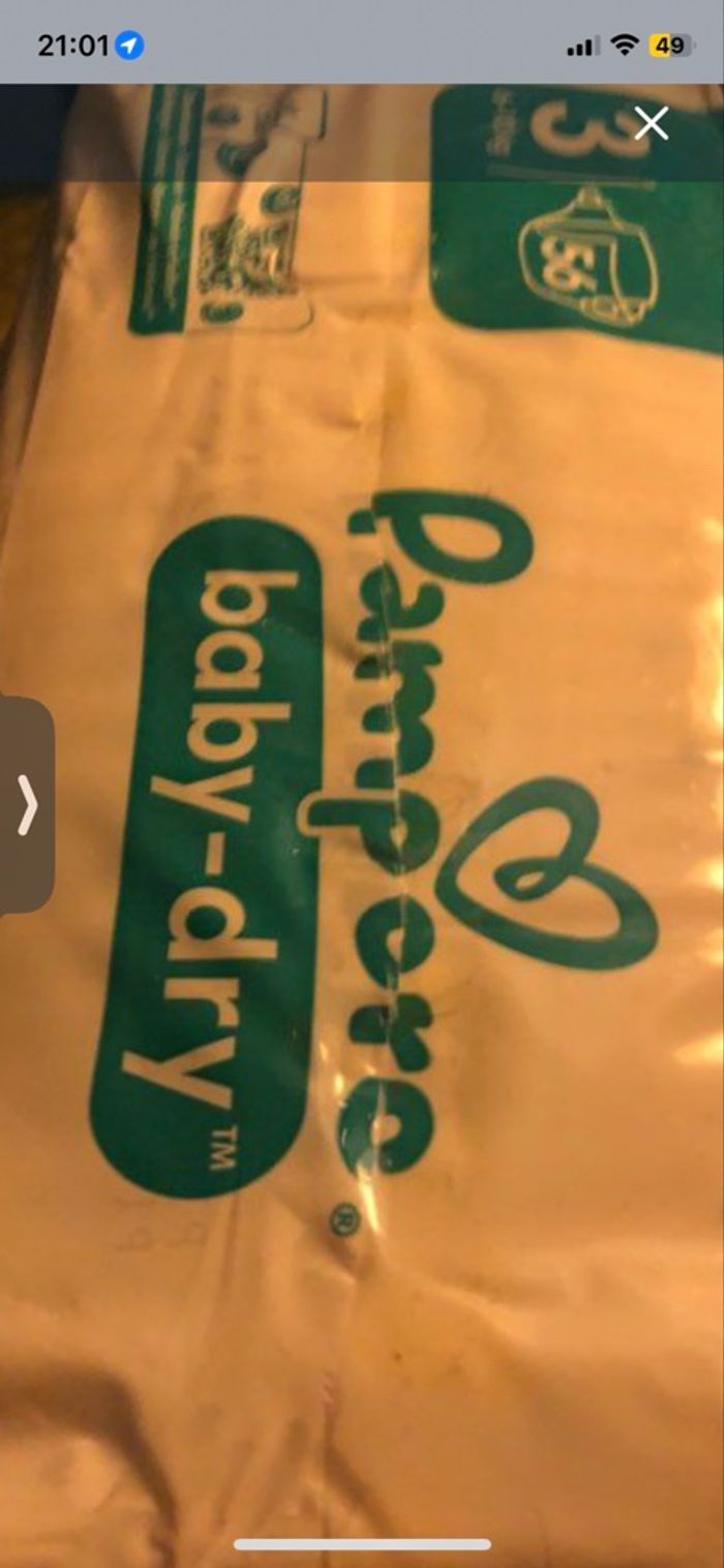 Paquet de 56 couches Pampers taille 3 6/10kg le paquet et neuf juste il était ouvert sur le dessus et j’ai mi du scotch le paquet les couche son totalement neuf et complet je vend 11€l’unité il me reste 4 paquet de couche merci de me dire avant achat combien de paquet vous souhaitez
