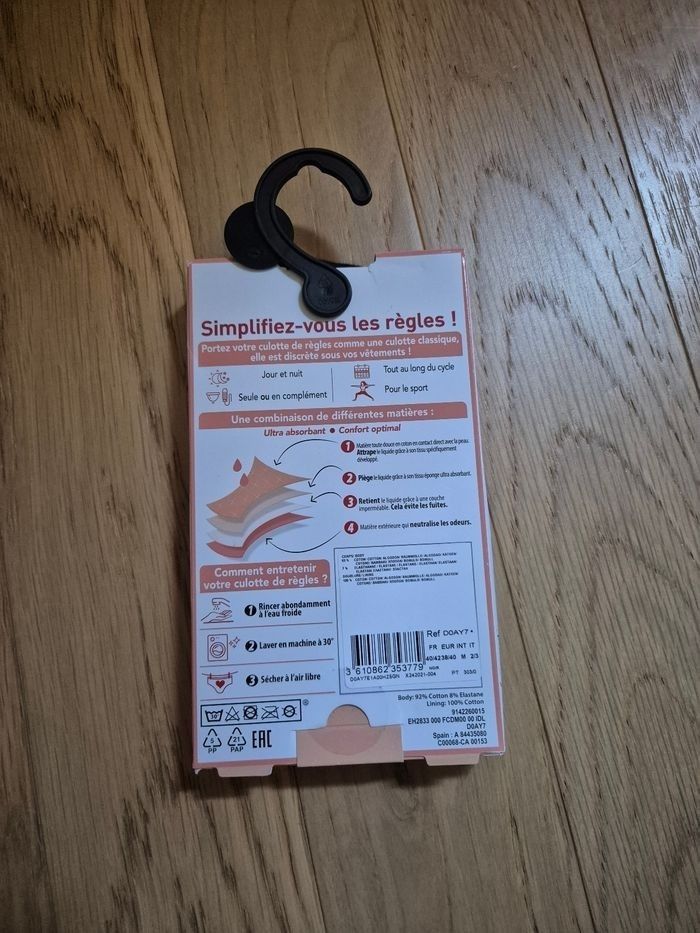 Culotte menstruelle / de règles (flux moyen), neuve dans son emballage - Marque : Dim - Taille : 40 - 42 (taille petit) - Coloris : noir - Composition : 93% coton, 7% elasthanne - Prix neuf : 26,99 - Maison non fumeur et sans animaux #elfedneigesfemme