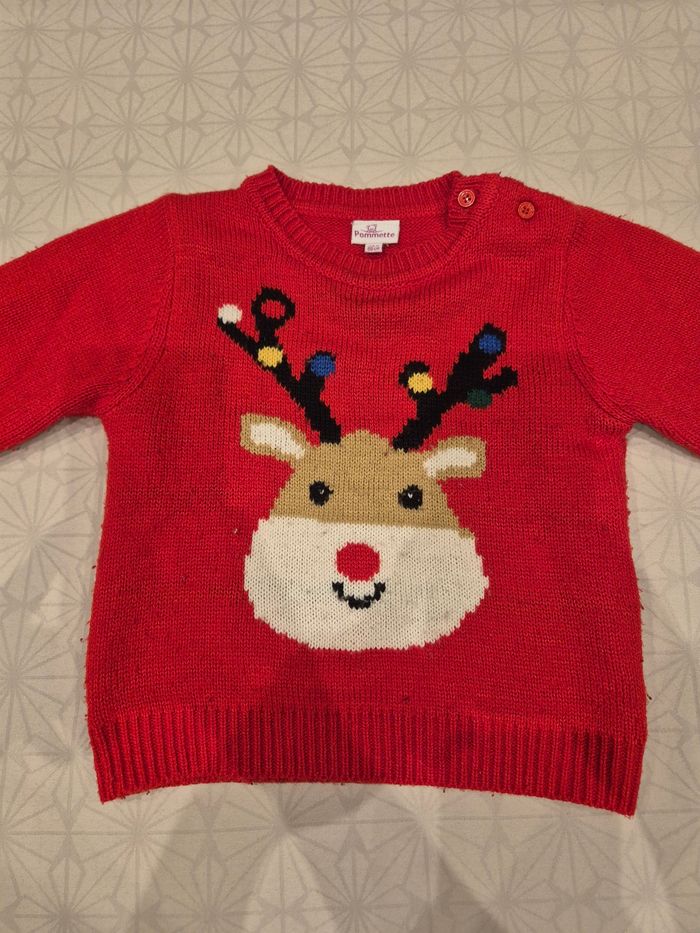 Bonjour, je vends un pull rouge de Noël de marque Pomette en 24 mois.