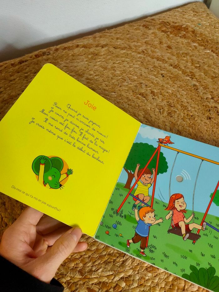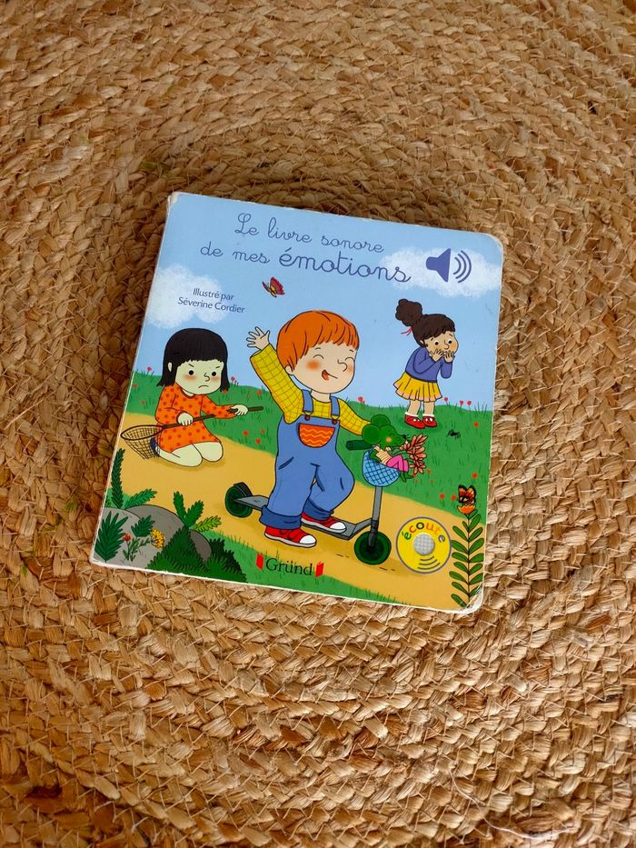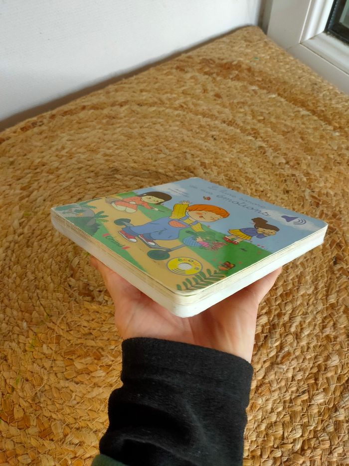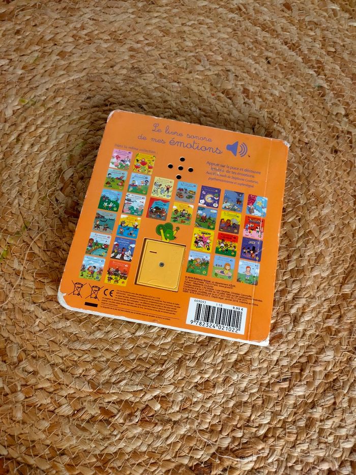 Au fil de cet ouvrage, l'enfant associe ses émotions (joie, colère, tristesse, sérénité, peur, fierté) à un son qui est évocateur de ce qu'il ressent. Le livre a été manipulé, il a des traces, il fonctionne parfait, vendu avec des piles neuves.