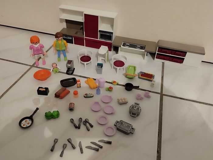 Cuisine playmobil (pour maison moderne) avec personnages et accessoires