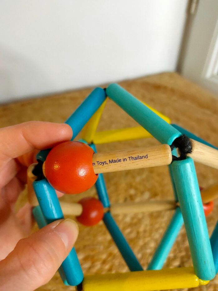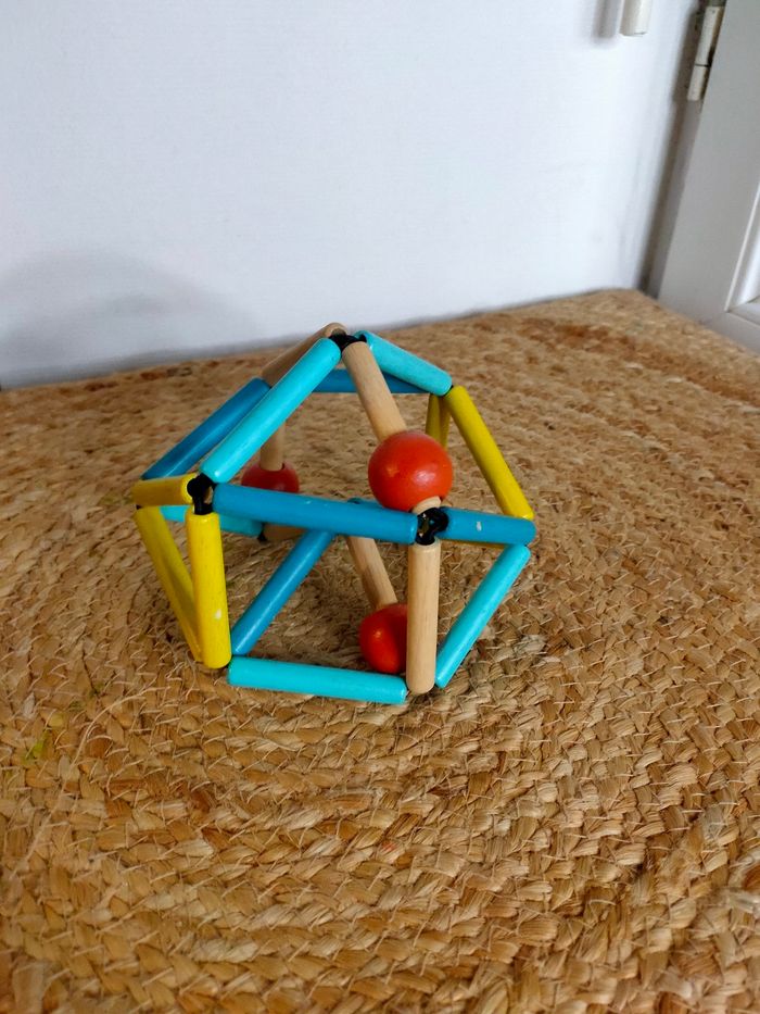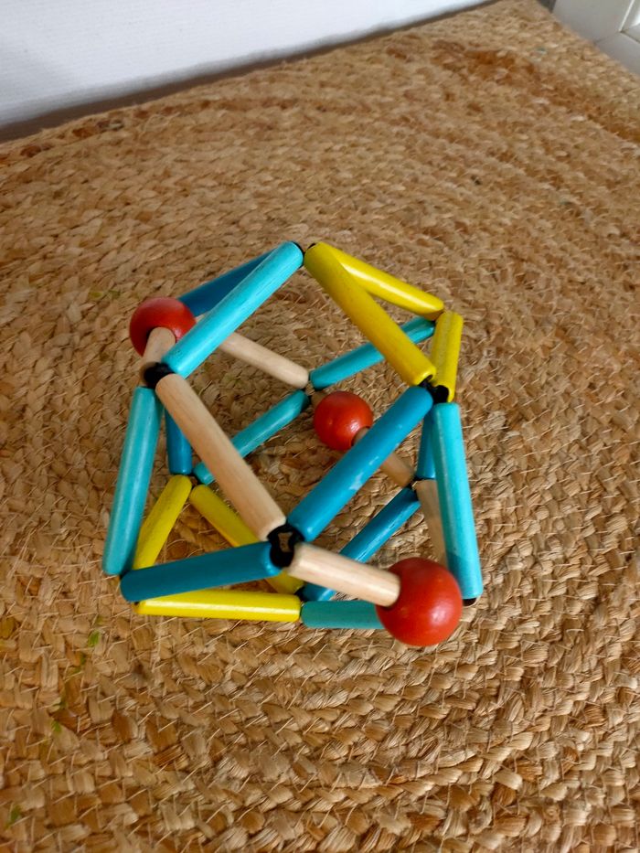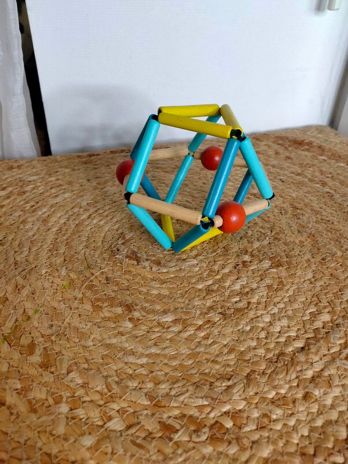 Ultra résistant, souple, flexible et facile à attraper, ce hochet en bois peut amuser Bébé pendant des heures. Une fois attrapé, il peut le serrer et l'étendre comme il le souhaite car l'élastique à l'intérieur lui fait reprendre sa forme initiale. Il est en très bon état. Prix ferme, PAS DE NÉGO !!! Prix neuf 20€ chez Nature et découverte