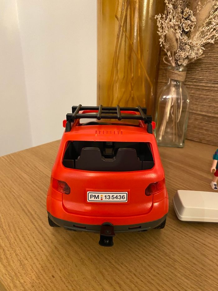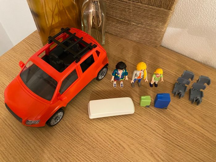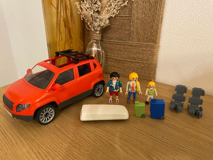Voiture rouge Playmobil avec coffre de toit