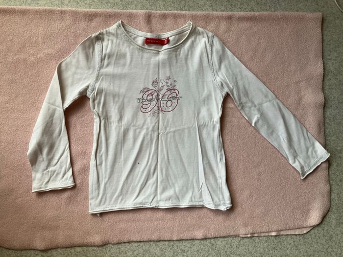 - Haut ML Ïdsport noté 5 ans (108 cm) qui taille plus petit / 100% Coton / Quelques strass en relief / 2 taches sur le devant, peut servir de maillot de corps / 29 cm de largeur sous les bras, 38 cm de longueur.