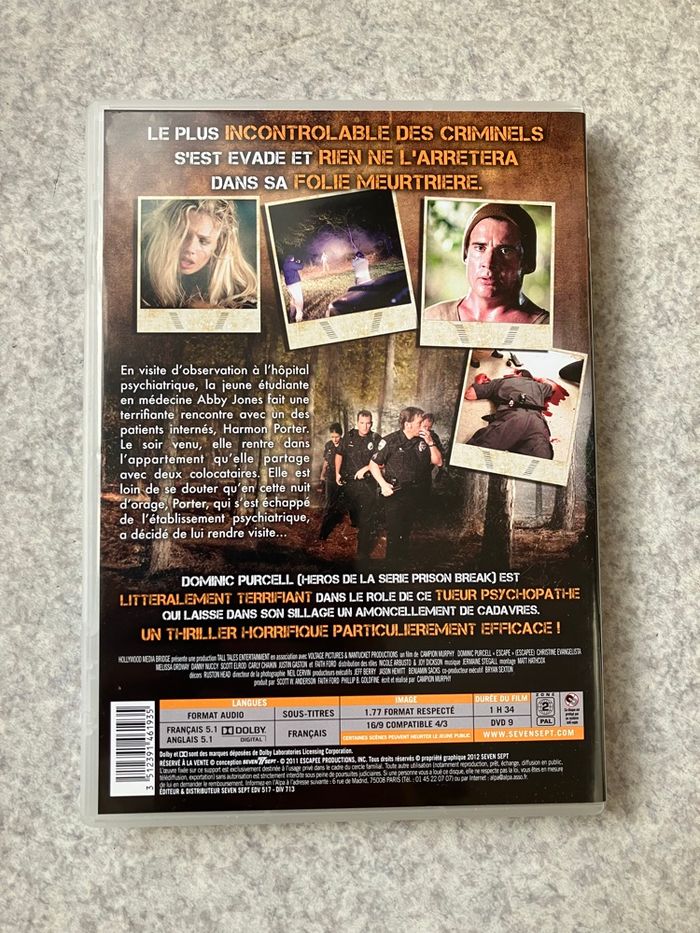 - DVD Escape avec Dominic Purcell / Thriller de 1h34 / Version française 5.1 / Acheté neuf, en TBE / Vendu 1€50.