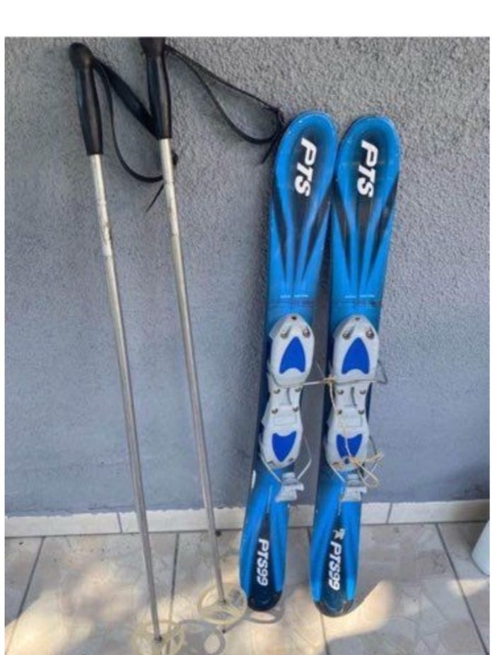 Paire de skis avec bâtons, idéale pour débutant ou ski loisir. ❄️Marque : PTS Gaspro 106/85/98 ❄️ model : PT 599 📐longueur 1m 🔐Fixations déjà montées ✅ ⛷️Skis courts, faciles à manier et stables Conviennent bien pour l’apprentissage ou le ski occasionnel ⛰️Bâtons Lispach inclus : 🖤Bâtons en aluminium 📍Poignées ergonomiques avec dragonnes pour une meilleur prise en main 🧼En bon état général