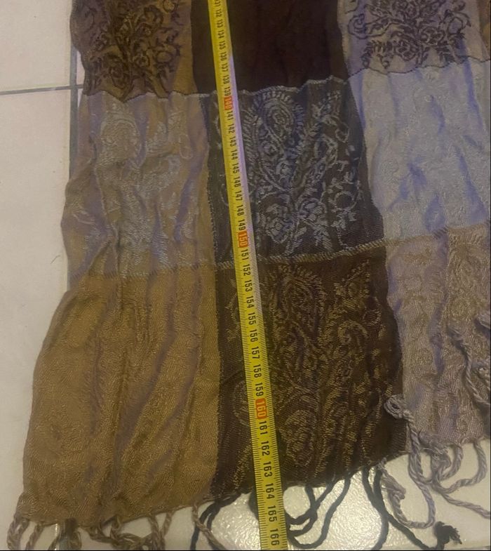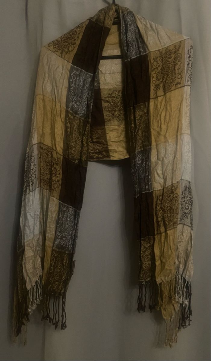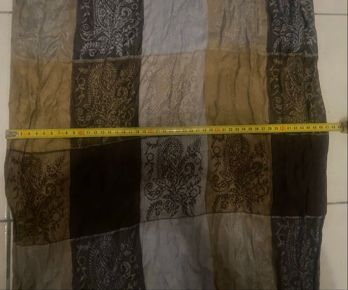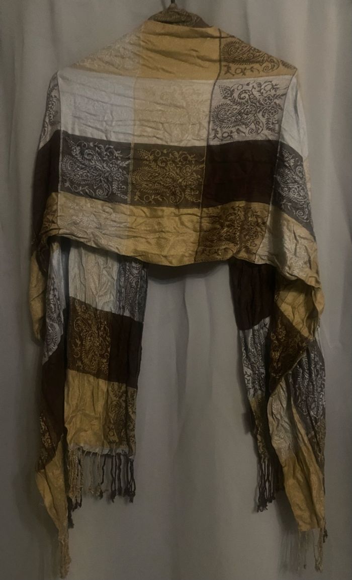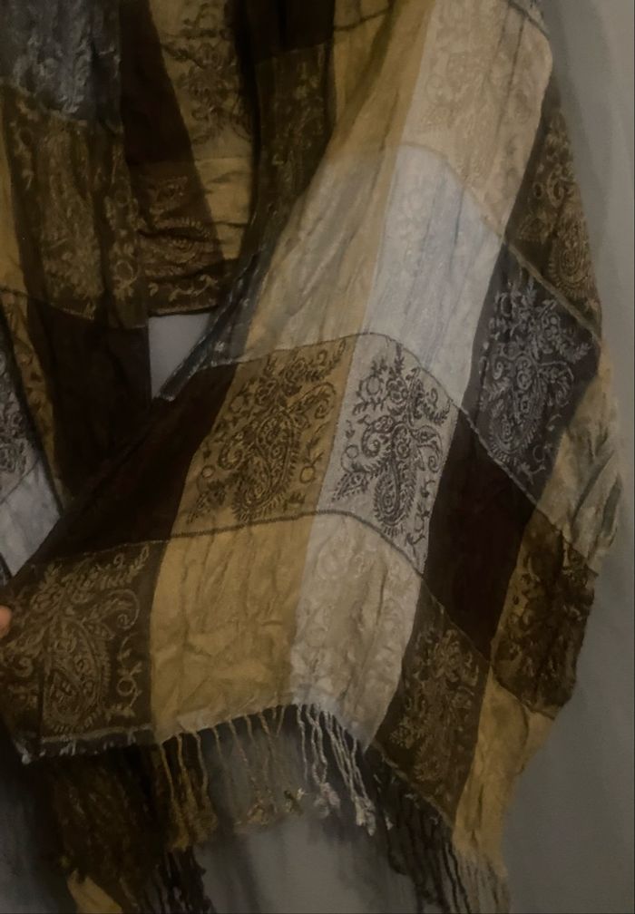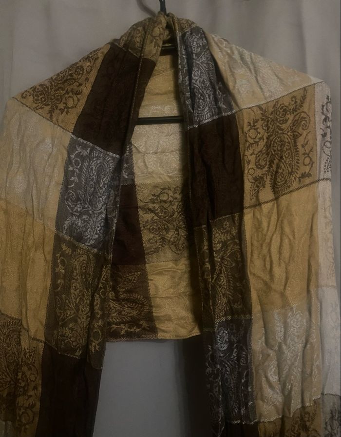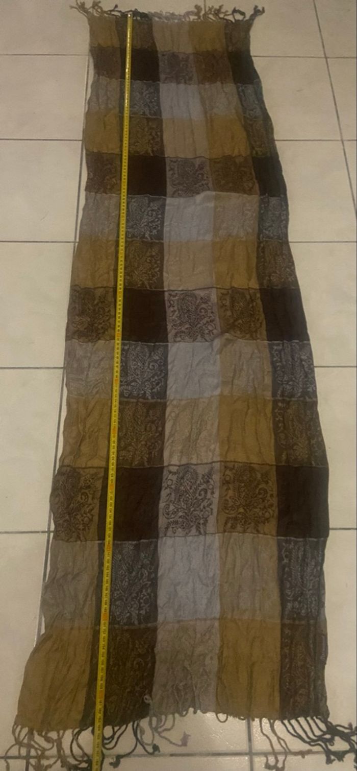 Grande écharpe »Marionnaud »à carreaux marron,beige et bleu clair en très bel état.