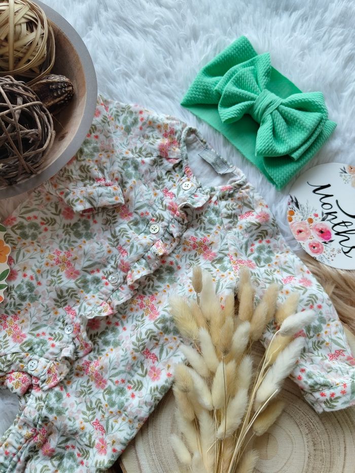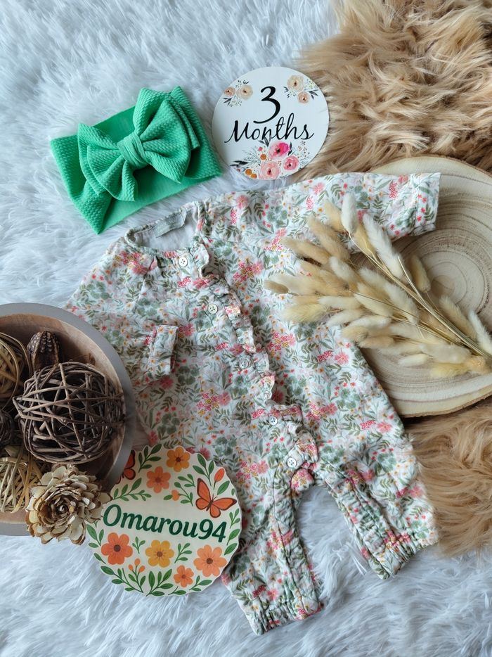 Combinaison fleurie et son bandeau cheveux bout'chou fille 3 mois 🎀