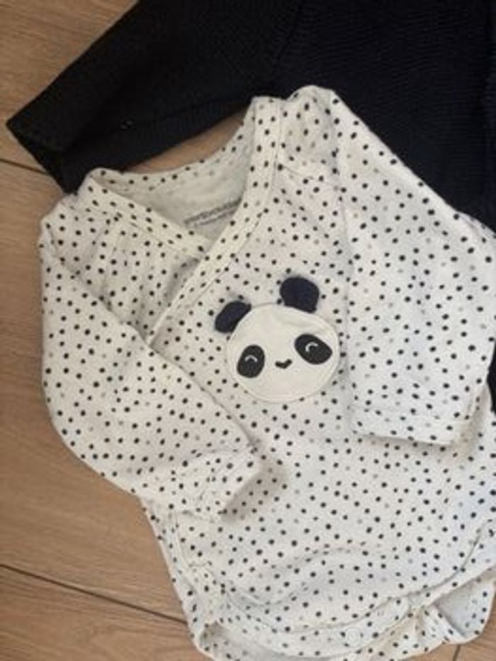 Ensemble maille gilet et pantalon en maille et body panda Mixte 3 mois TBE N’hésitez pas à faire un lot, les réductions sont activées 🍂