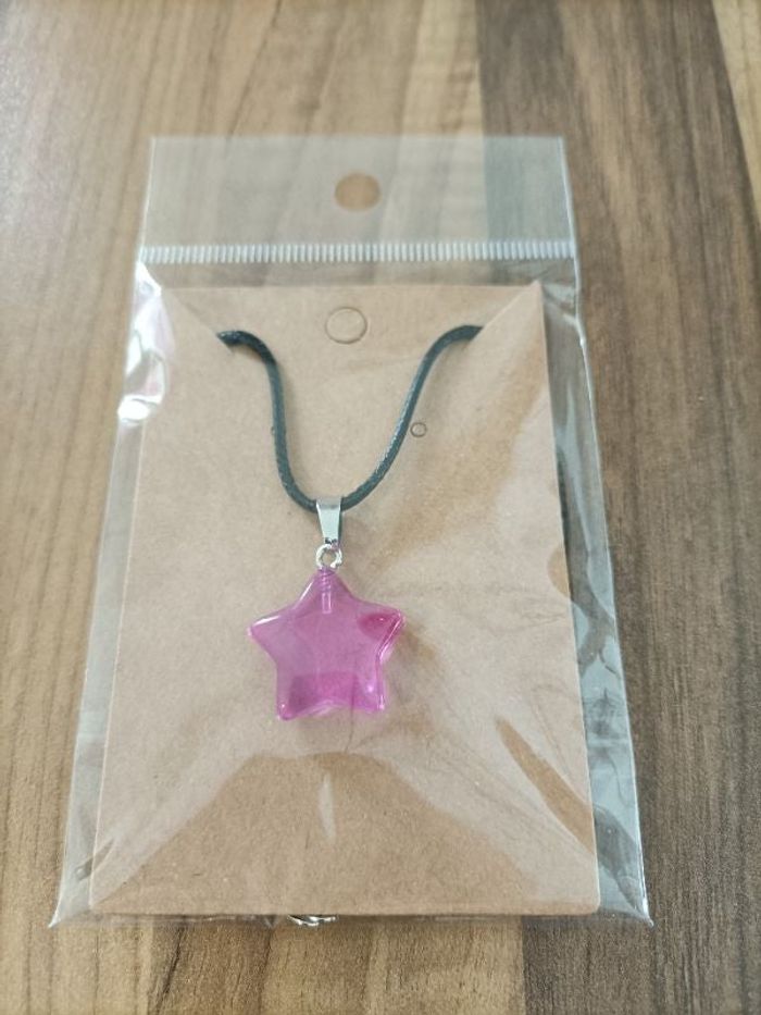 Collier neuf pendentif pierre naturelle en étoile rose