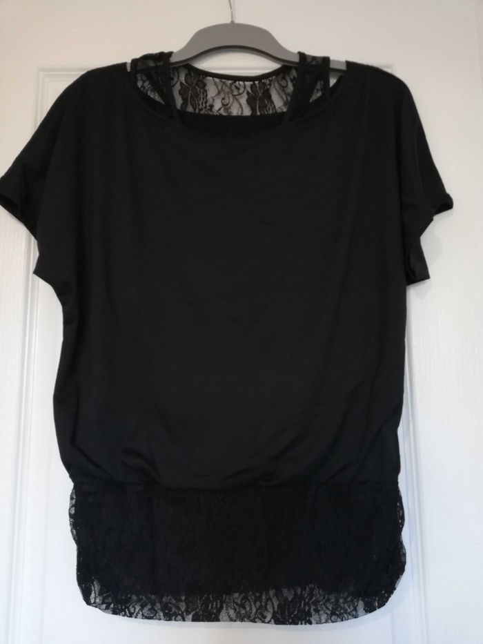 Tee-shirt noir neuf avec débardeur dentelle neuf M