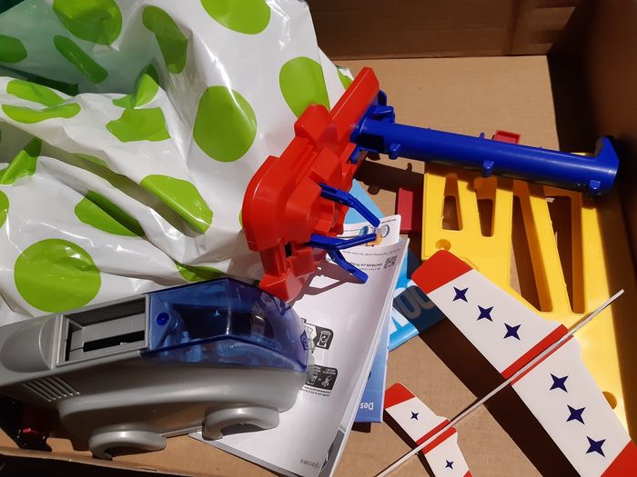 Domino express avec la machine qui aligne les dominos. En très bon état excepté la fusée en mousse qui est cassée et a été jetée