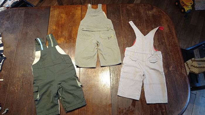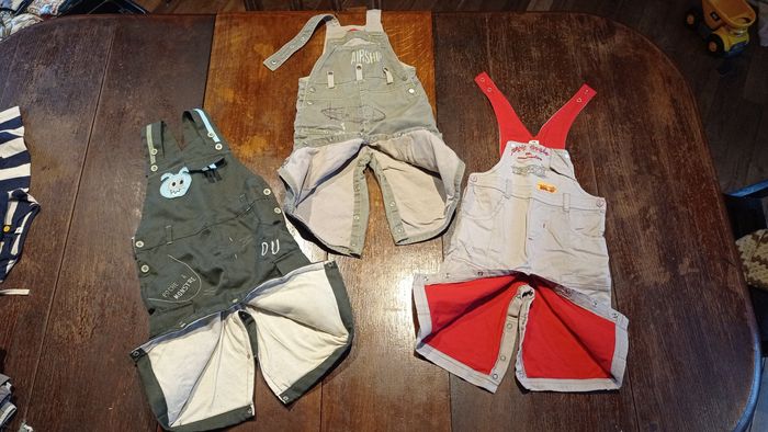 Vend lot de 3 salopette pour l'hiver 1 an (format pantalon) 2 en tissu "jean" et 1 en synthétique doublé. Très bon état sauf une petite tâche bleu sur la verte (voir photo)