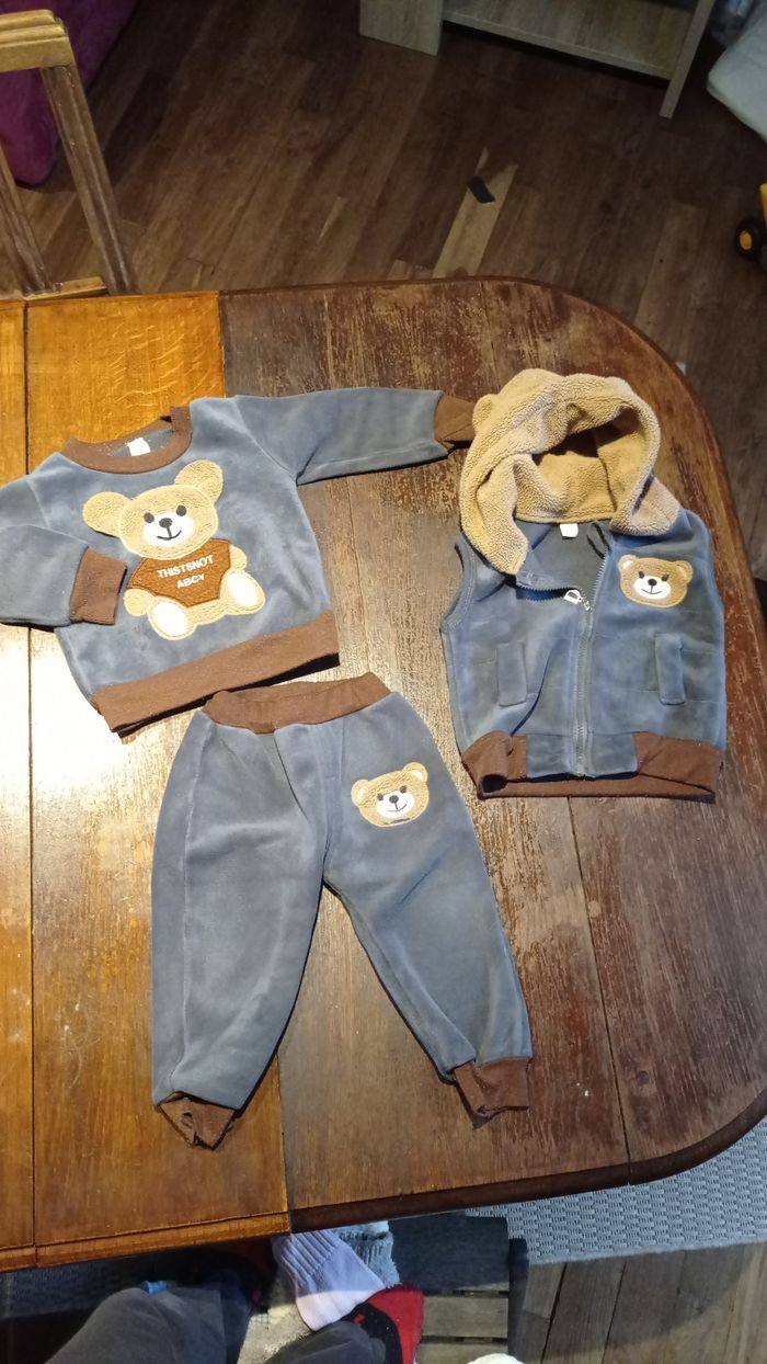 Vend 2 ensembles complet pour l'hiver composé chacun d'un pull pantalon et veste sans manches assorti en 1 an et en bon état (la tête du nounours situé sur le pantalon gris est un peu usé sur le bas comme le montre la photo). Ils taille grand pour du ans ils ont fait jusqu'à la fin des 18 mois pour ma fille. Je vends d'autres vêtements 1 an n'hésitez pas regarder et à me contacter si cela vous intéresse pour éventuellement faire des lots (dans ce cas là je ferai un prix en fonction du lot) ou pour plus de renseignements 😊