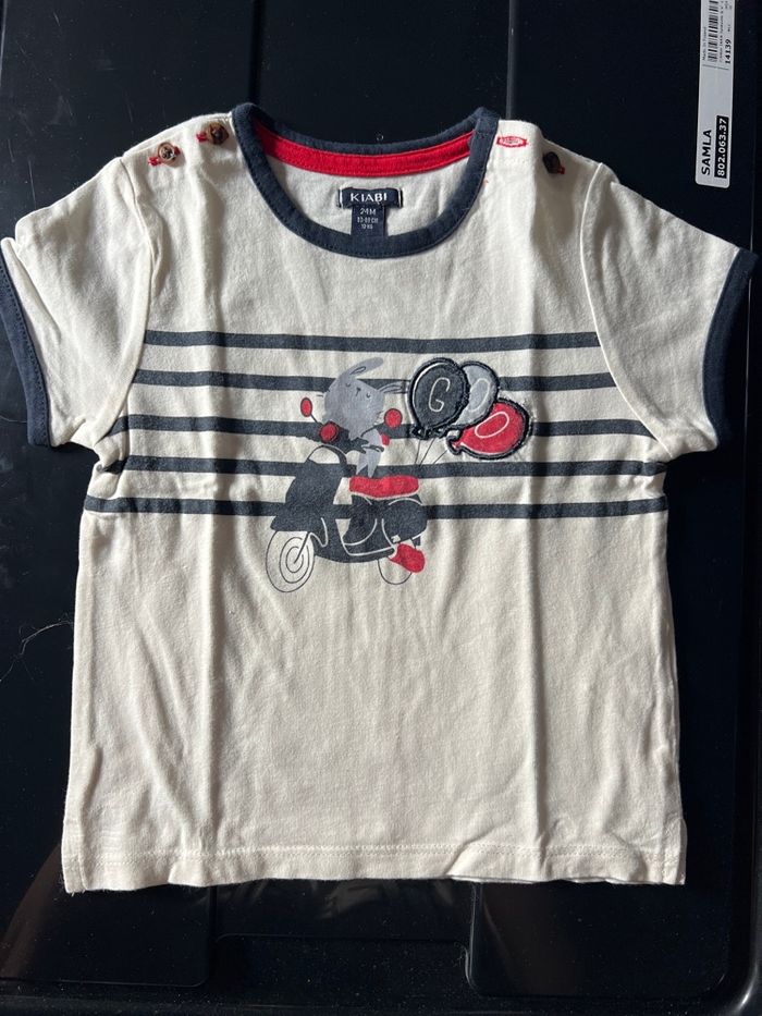 T-shirt courtes manche Blanc imprimé scooter devant Taille 24 mois