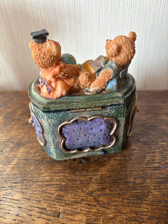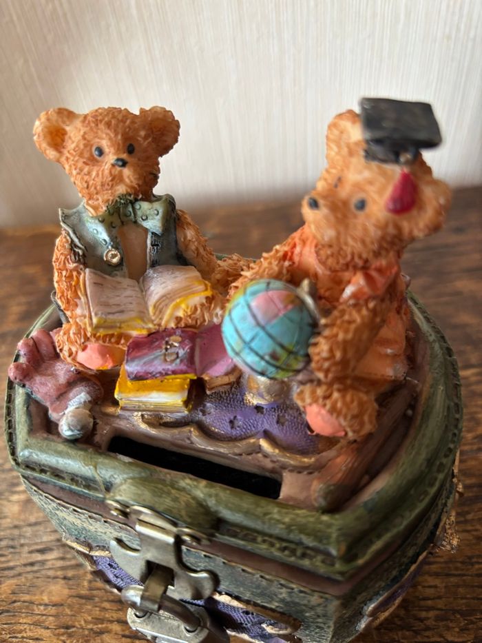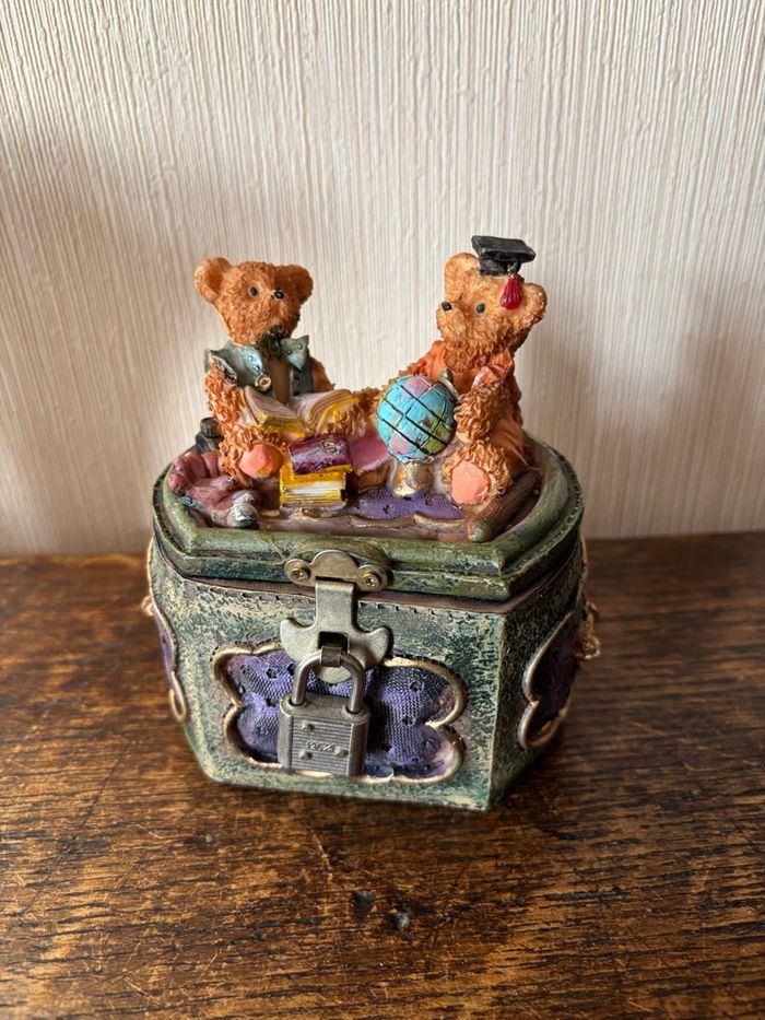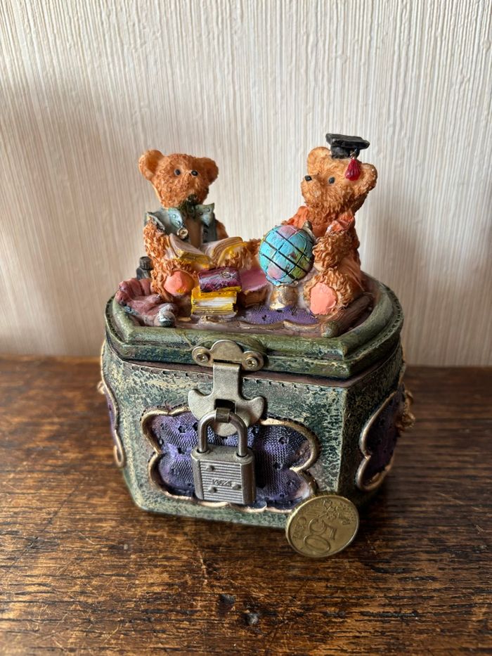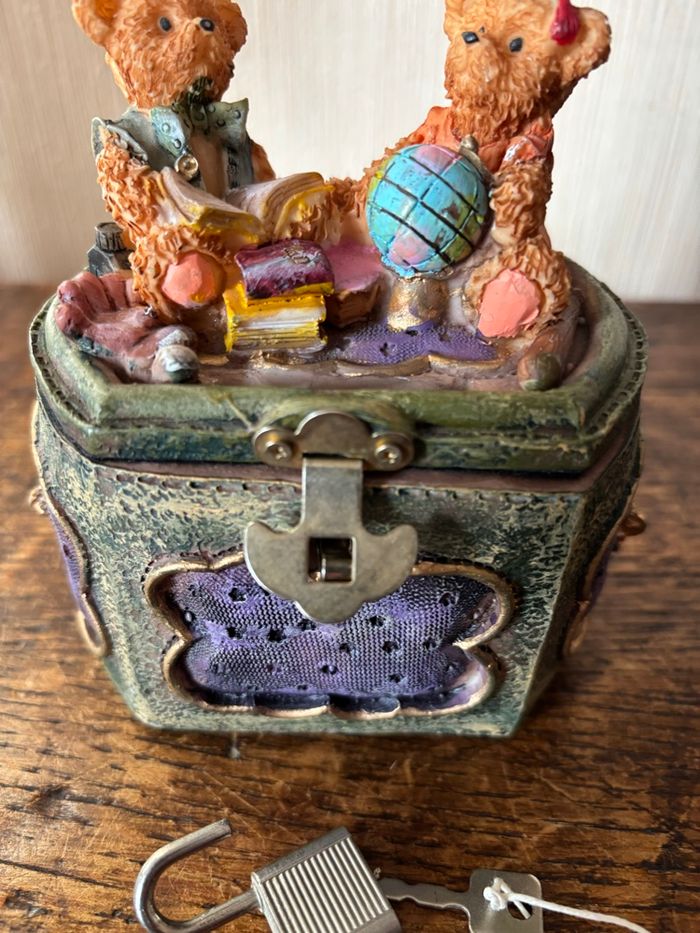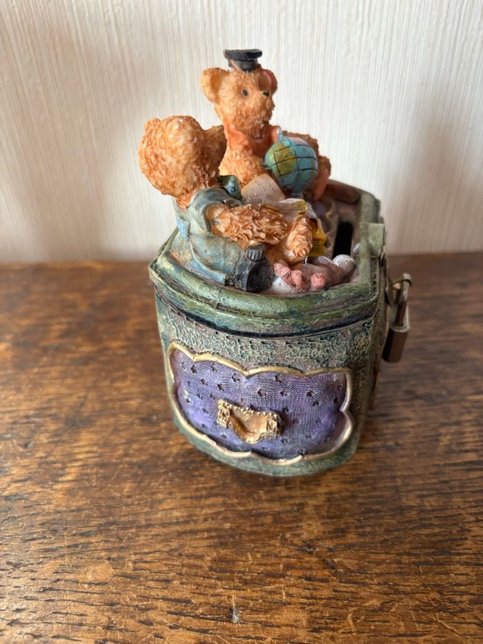 Style vieux coffre avec 2 oursons assis dessus