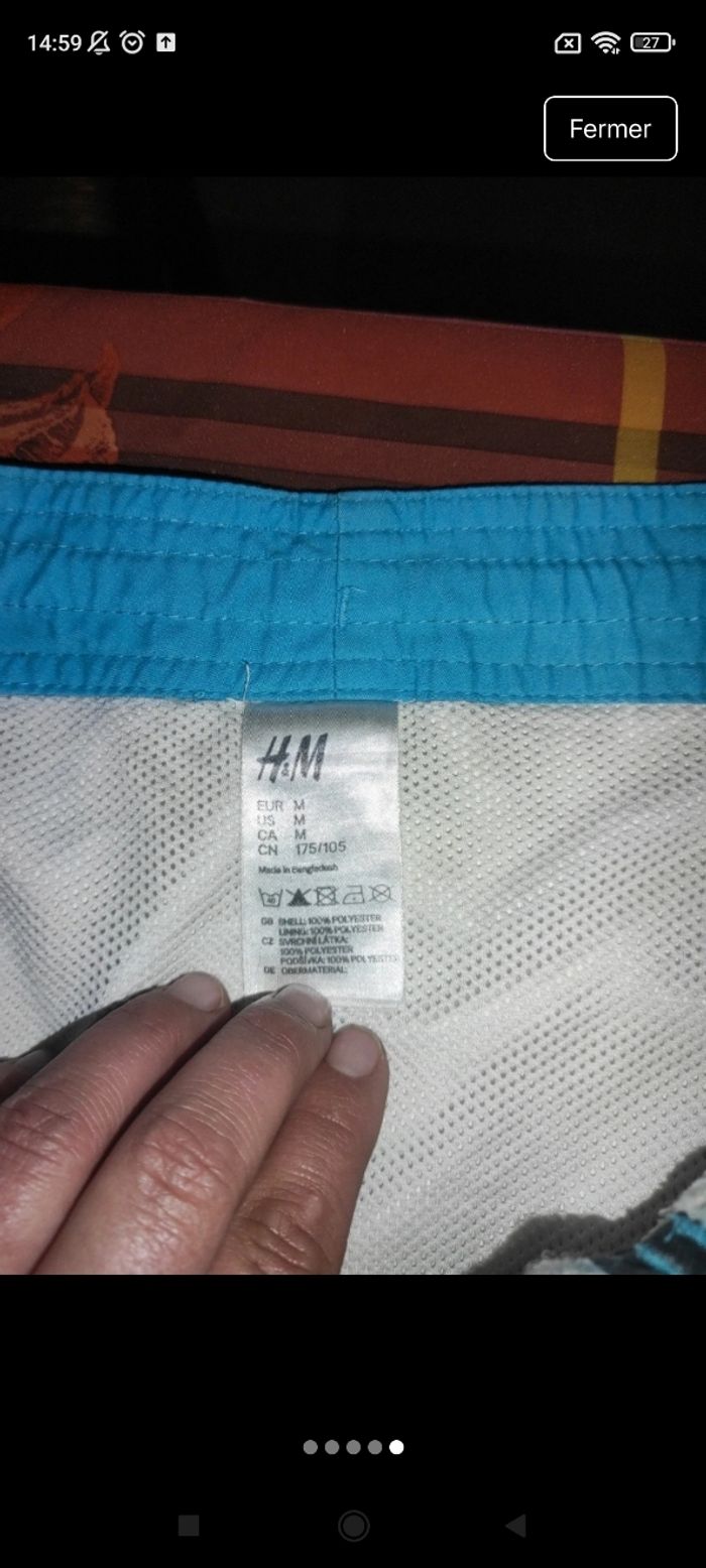 Short bain homme Taille M H&M Largeur taille 44cm Longueur 55cm F17