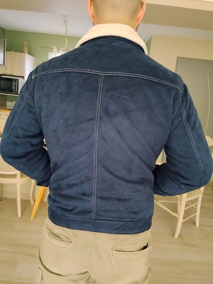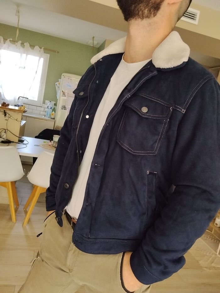 Parfait état, très peu porté. Veste couleur bleu matière velour. Personne portant la veste : 1 m83 - 95 kg Motif de vente : un peu juste pour fermer. Idéal pour un cadeau de Noël Envoie rapide et soigné