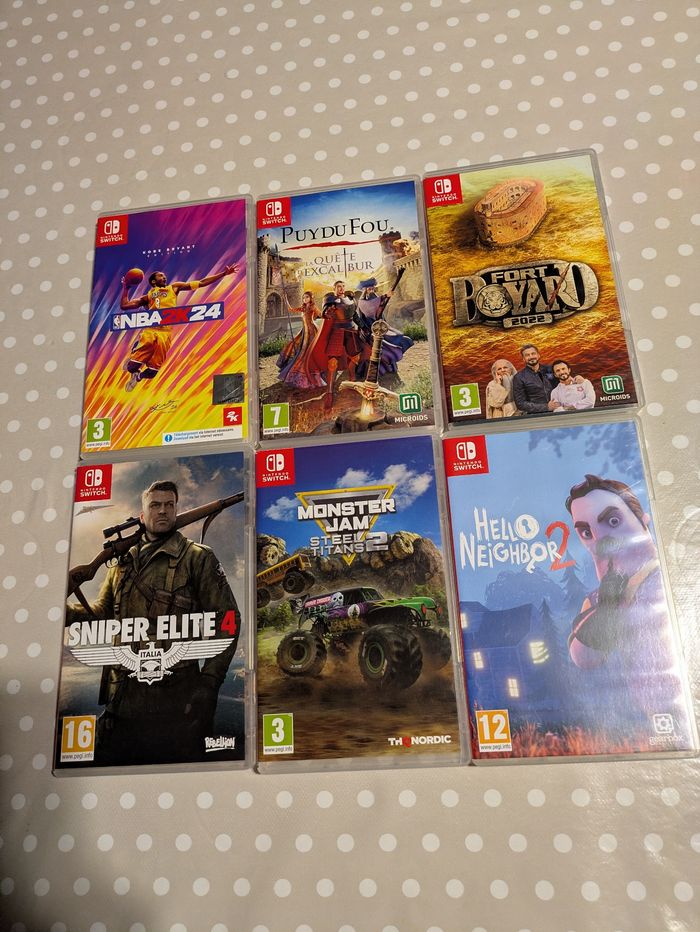 Liste des jeux Switch que je vends: Fort Boyard 2022 - Puy du Fou la quête d'Excalibur - Monster Jam Steel Titans 2 - jeu de basketball NBA 2k 24