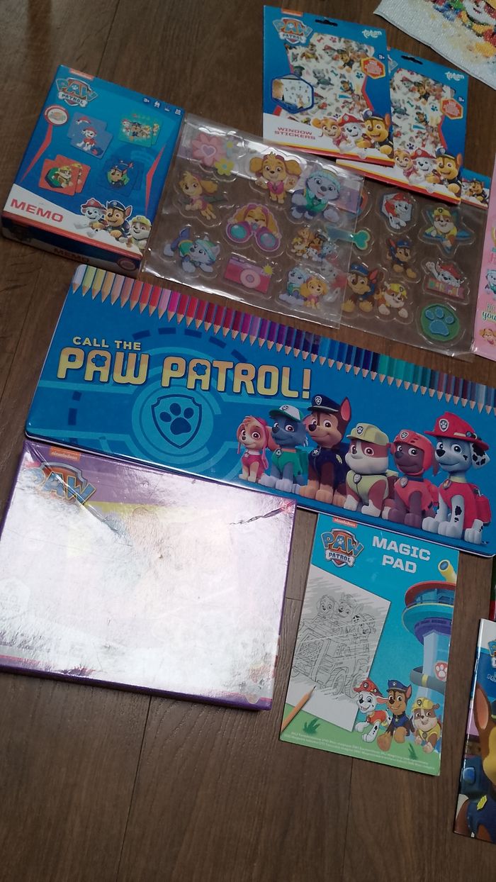 Différents pat patrouille Différents prix * 2 lots neuf windows stickers électrostatiques de 4 feuilles avec autocollants électrostatiques et un paysage 12€ pour 1 lot * Diamant painting pat patrouille 8€ * Grand autocollant pour fenêtre (stickers) 48x29cm 6€ * Mosaic by number (mozaic par numéro) Reste 1 neuf et 1 à finir 5€ * Mémo pat patrouille Boite abîmé intérieur 8€ * Windows gel stickers 1 fille et 1 garçon 6€ piece * 2 feuilles de stickers environ 50 stickers 5€ * Lot de 50 crayons de couleurs Manque 1 crayon Boite en bon état 12€ * Puzzle 50 pièces Paw patrol nickelodeon 30x20cm 1 piece abîmé 12€ * Bloc magique (magic pad) 5€ * Livre L'anniversaire Je lis avec un grand Un petit gribouilli a la dernière page (page blanche) 5€ * L'ABC lettre, chiffres, formes et couleurs... Neuf Lettre A anniversaire 8€ * Livre Taquin Jeu, puzzle coulissant avec une histoire a l'intérieur(livre à l'intérieur) 12€ * Livre coloriage à l'eau Fille où garçon Fille état moyen sans crayon 3€ Garçon bon état avec crayon 5€ * Stickers scène whith diamond 3 feuilles neuve et un déjà commence reste plus des 3/4 des diamants 12€