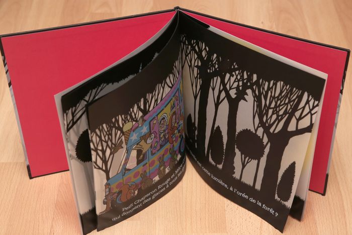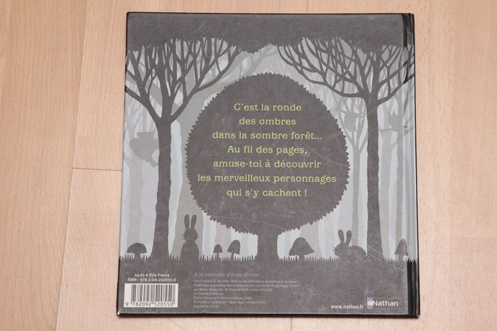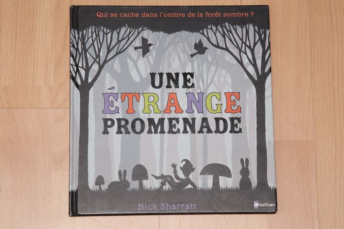 Grand format "Une promenade mystérieuse au coeur d'une forêt peuplée d'ombres. Sur chaque double page, l'enfant s'amuse à deviner à qui appartient l'ombre qui se dessine sur le calque. Lorsqu'il tourne la page, il découvre un personnage de conte classique." Juste les coins un peu abîmés