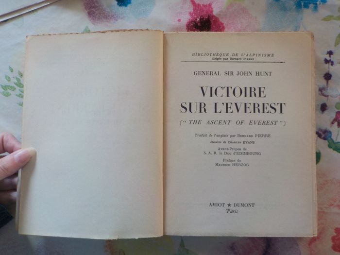 VICTOIRE SUR L'EVEREST par Général Sir John HUNT avec la collaboration de Sir Edmund Hillary et des autres membres de l'Expédition Avant-propos de S.A.R. le duc d'Edimbourg Préface de Maurice Herzog Ed. Amiot-Dumont 1953 Bon état - cf photos la couverture papier sera jointe à l'envoi, mais elle est très abimée (cf photos)